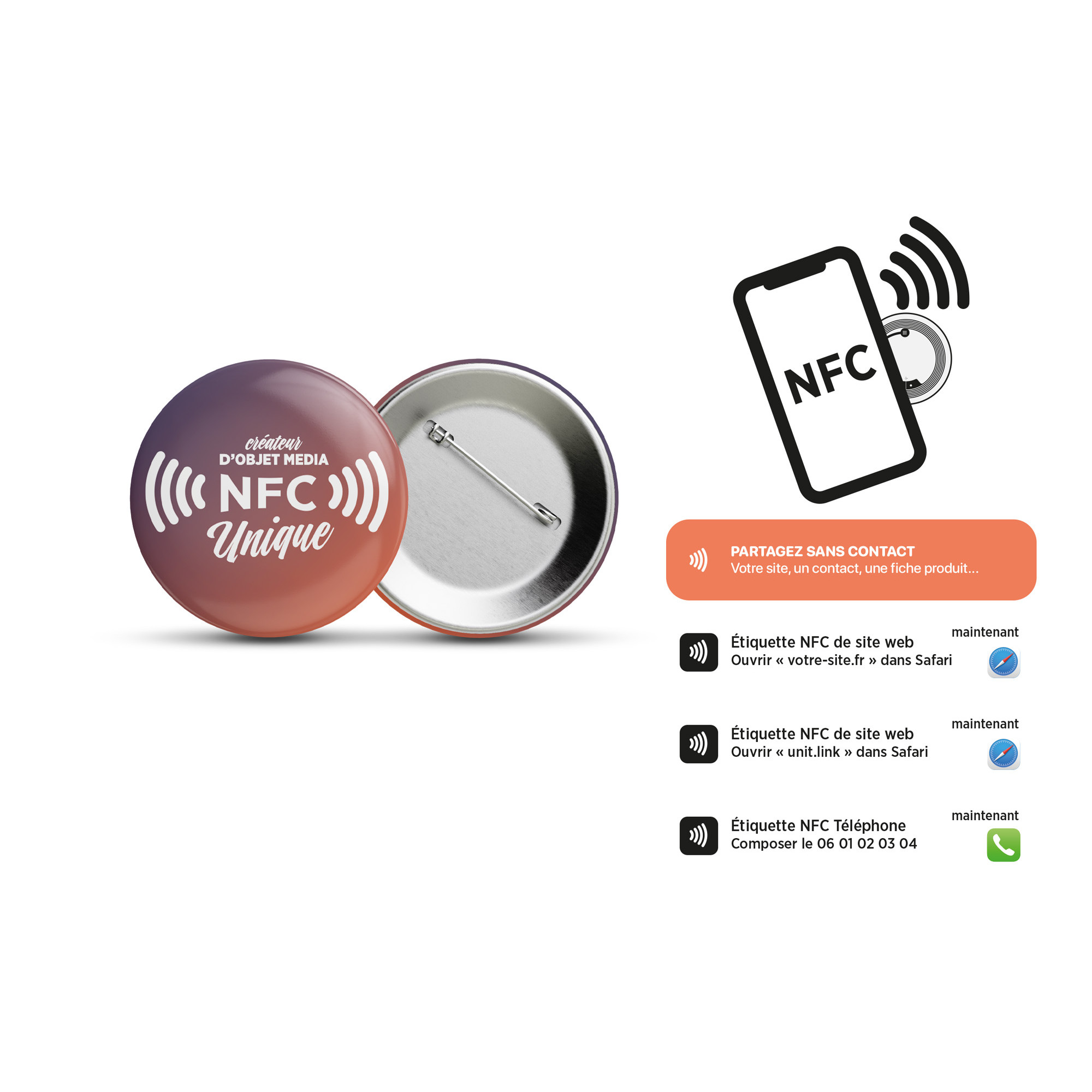 BADGE BOUTON AVEC PUCE NFC